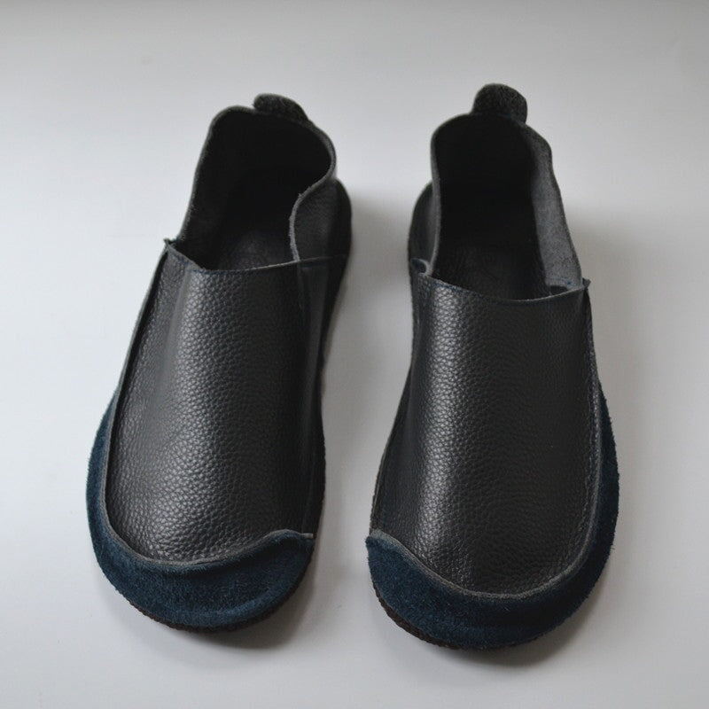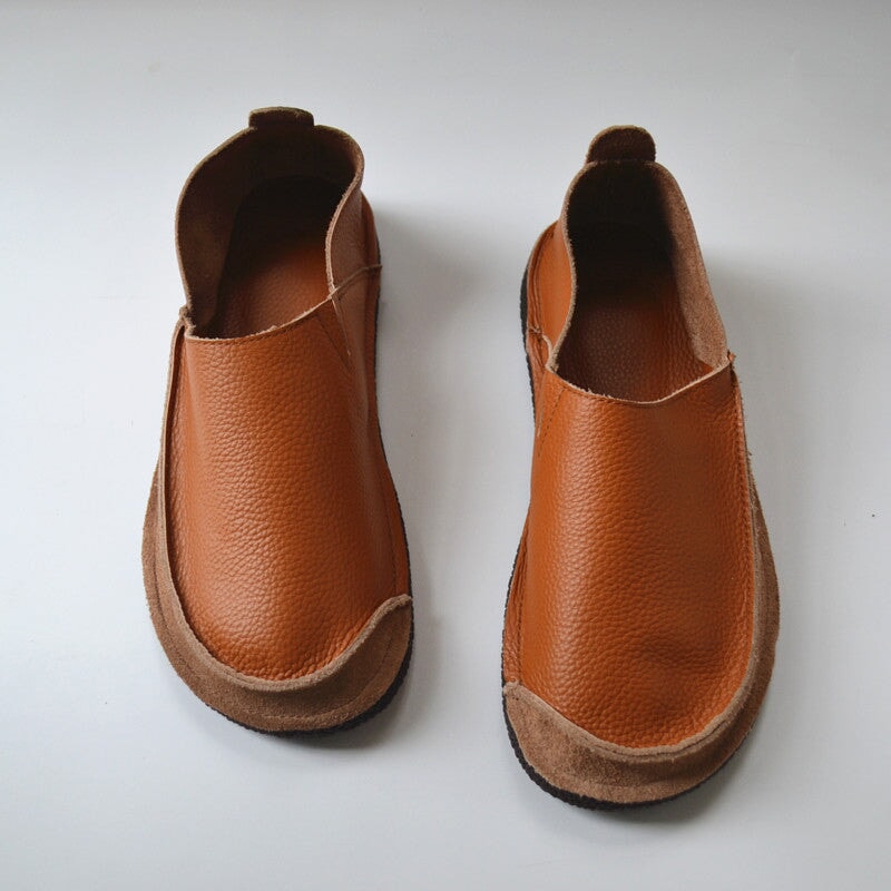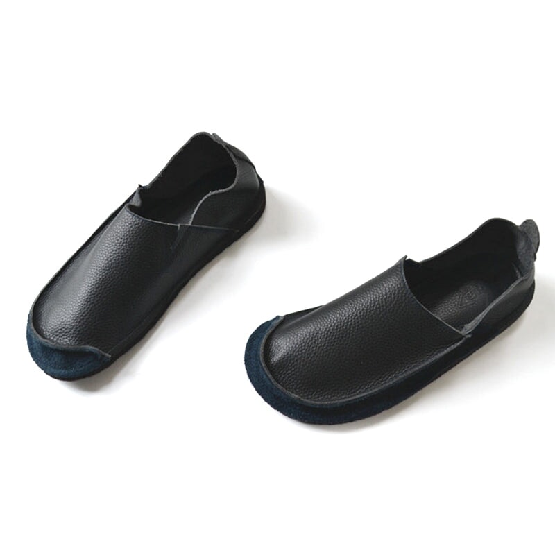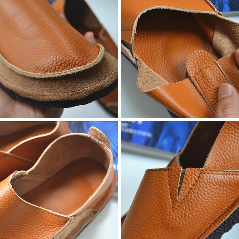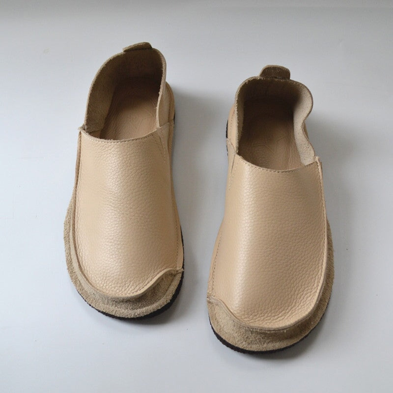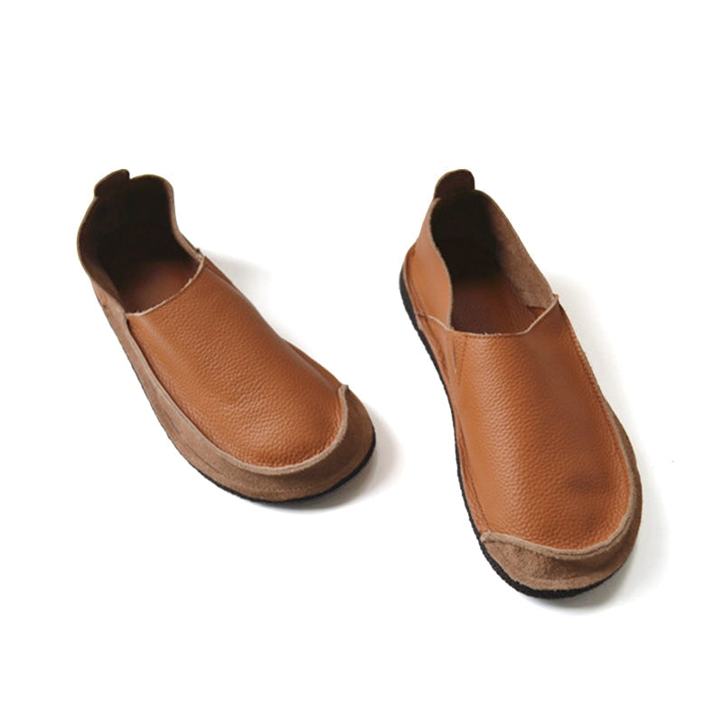 Women’s Soft Slip-On Barefoot Loafers Full-Grain Leather Flat Casual Shoes in Brown/Beige/Dark Blue