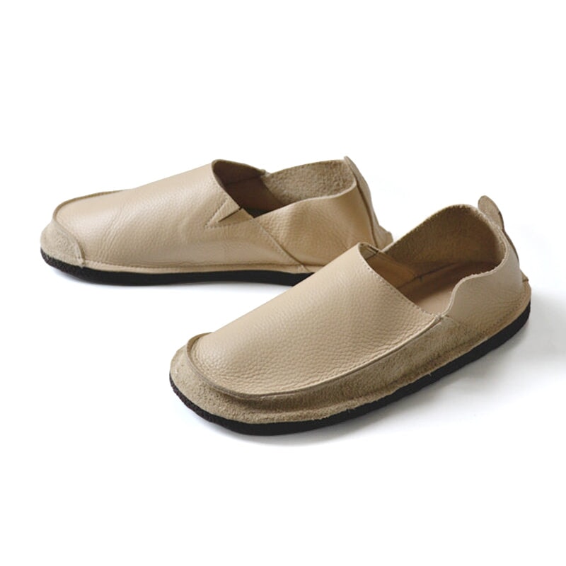 These women’s slip-on loafers are crafted from premium full-grain cow leather paired with cow suede detailing for a soft and natural feel. Designed with a comfortable round toe and flexible rubber sole, they’re perfect for everyday casual wear. The hidden elastic insert at the opening provides an easy, secure fit, while the flat design ensures all-day comfort. Lightweight, flexible, and minimalist, these loafers are an ideal choice for those seeking effortless comfort and simple style.