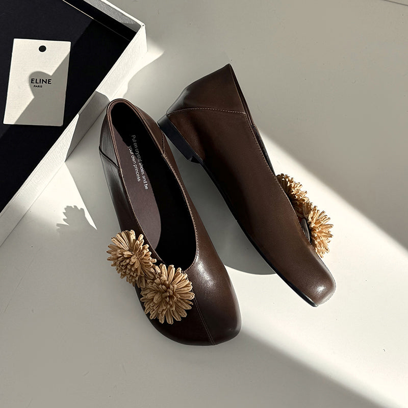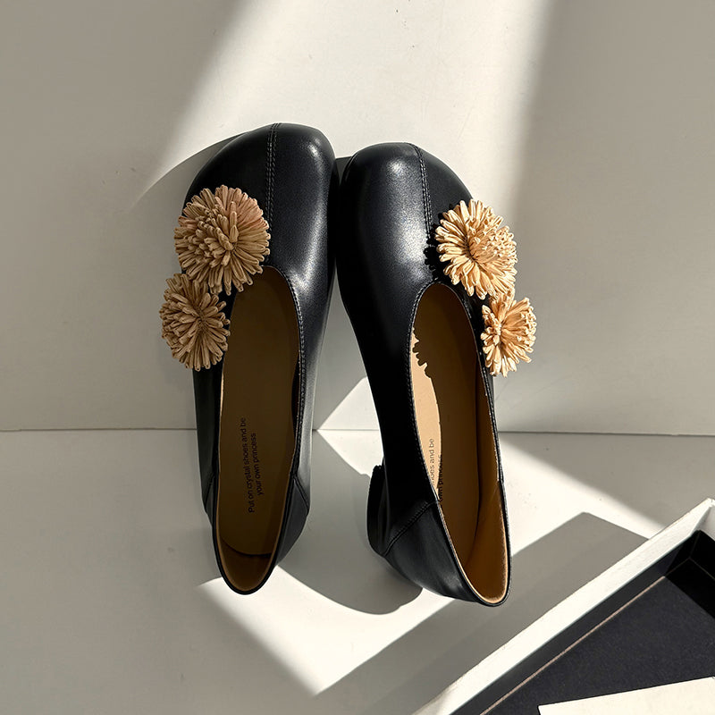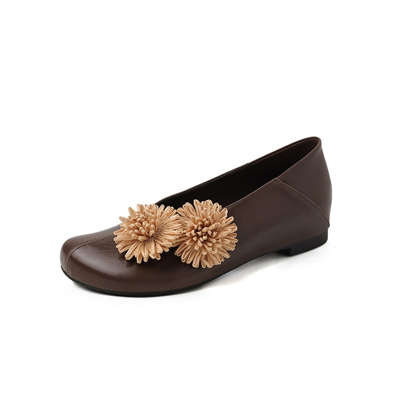 Step into elegance with these women’s round toe loafers crafted from split coated cow leather. Designed with removable sweet flower decorations, these shoes let you switch between playful and minimalist looks with ease. Featuring hidden height increase, soft rubber soles for comfort, and a casual yet refined style, they’re perfect for everyday wear, work, or weekend outings.