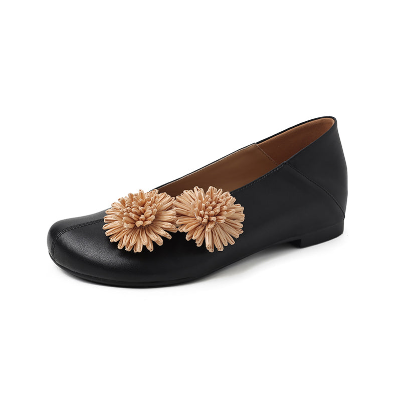 Women's Leather Loafers with Removable Flower Decor Casual Elegant Slip-On Shoes in Black/Brown/Silver