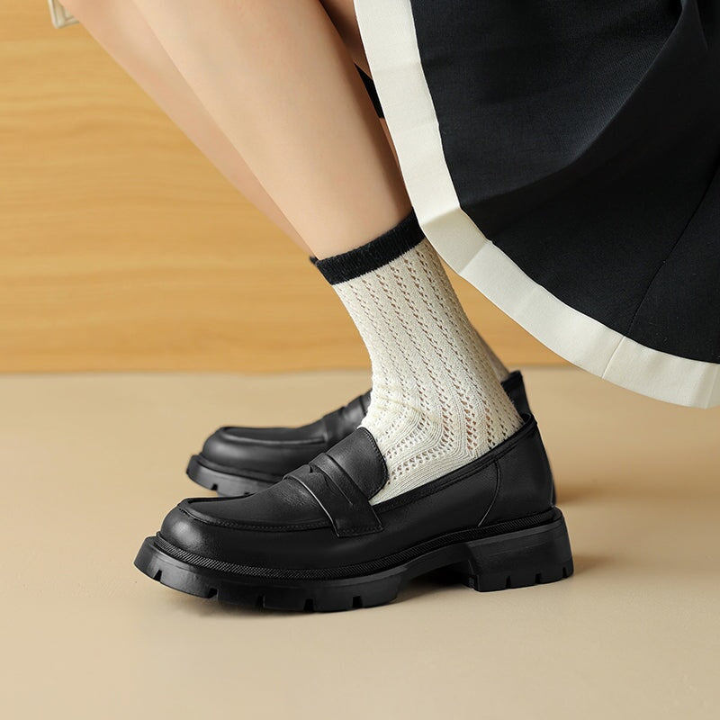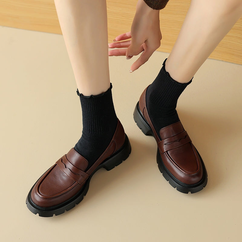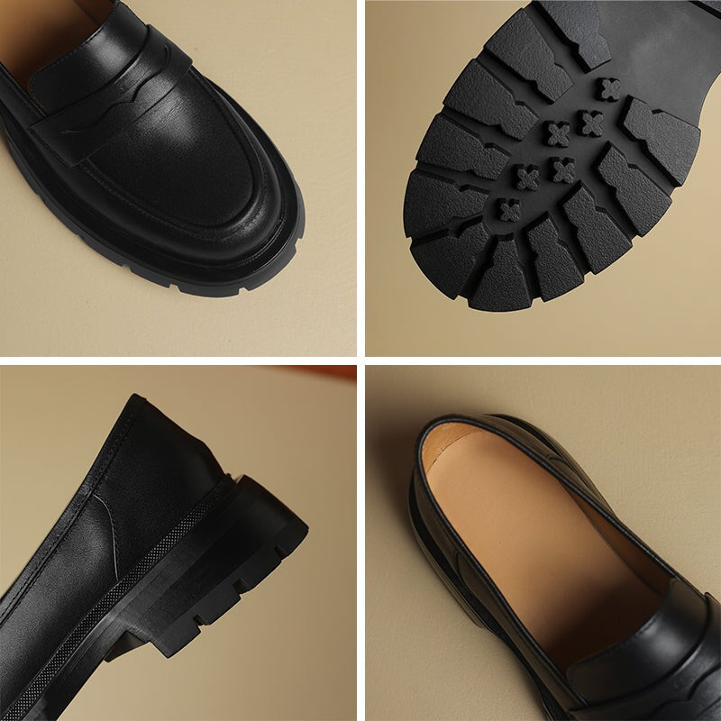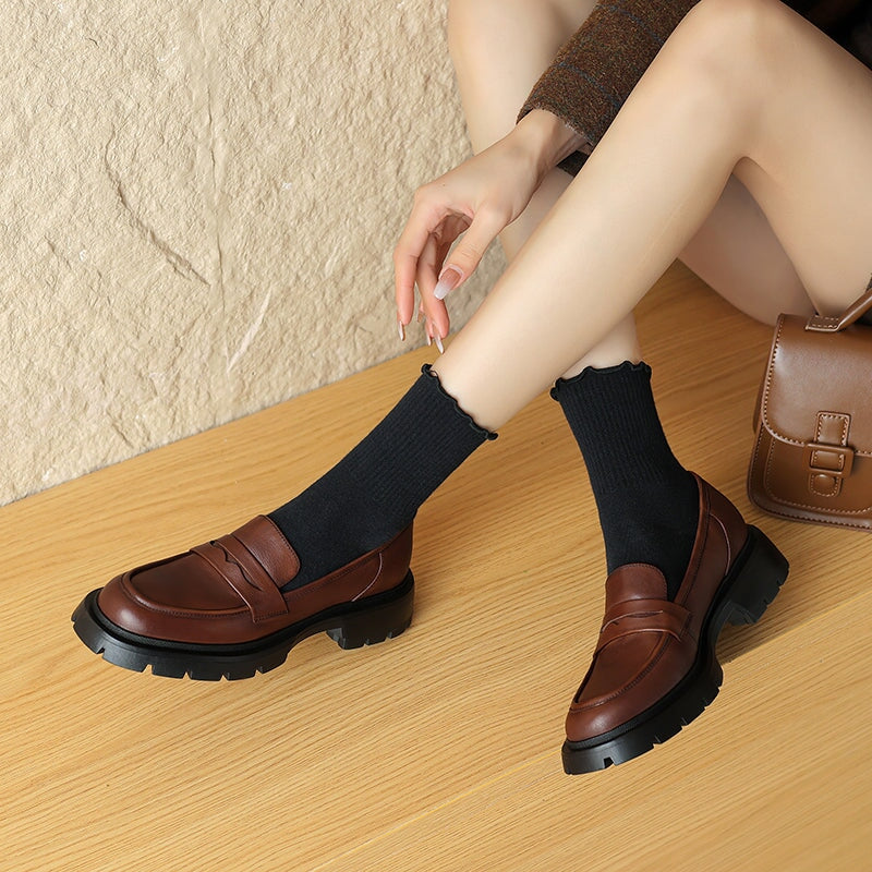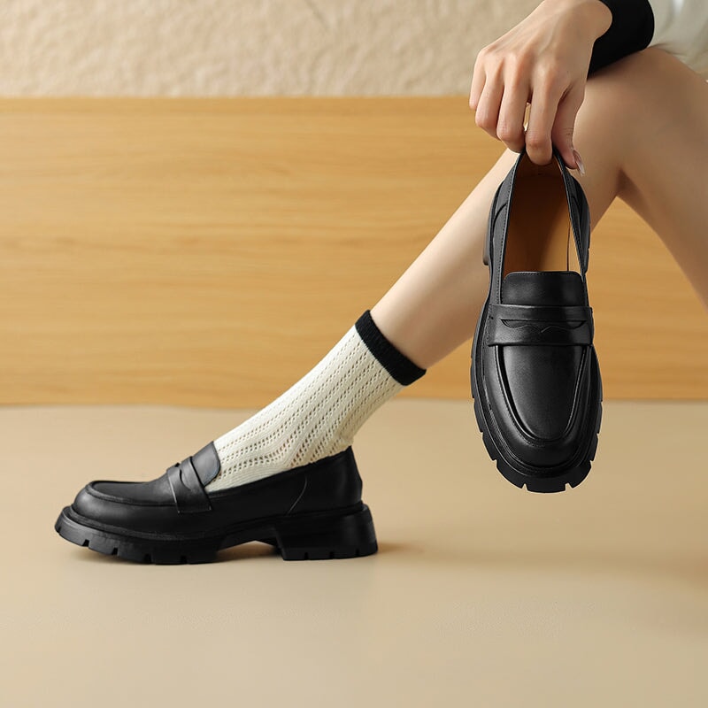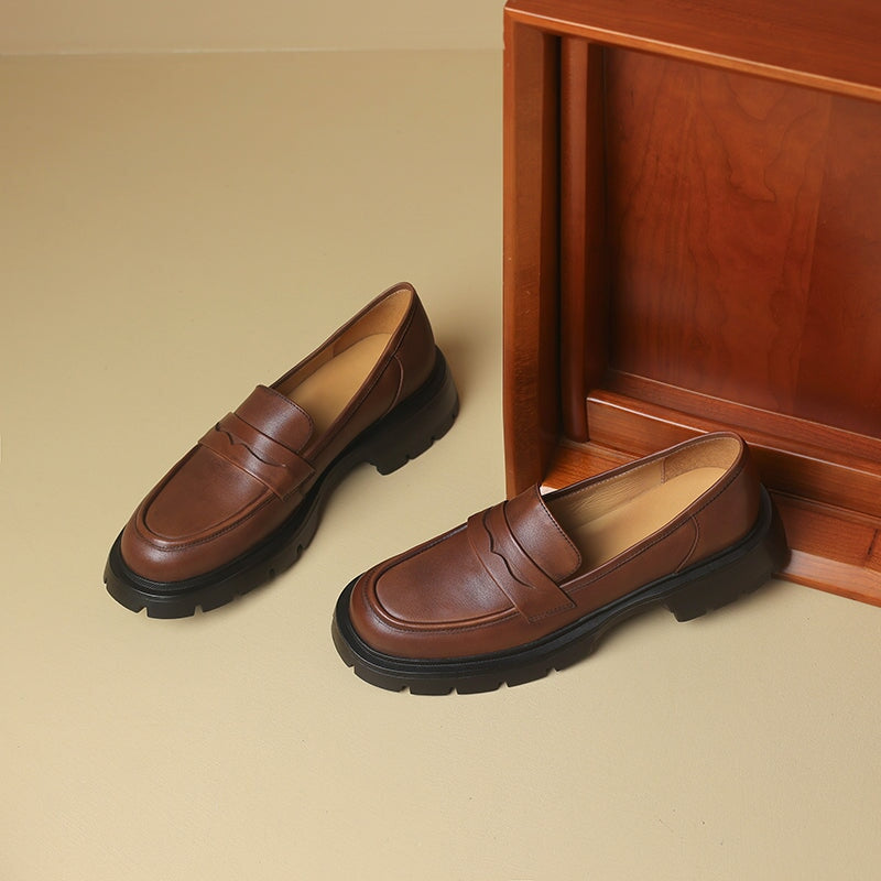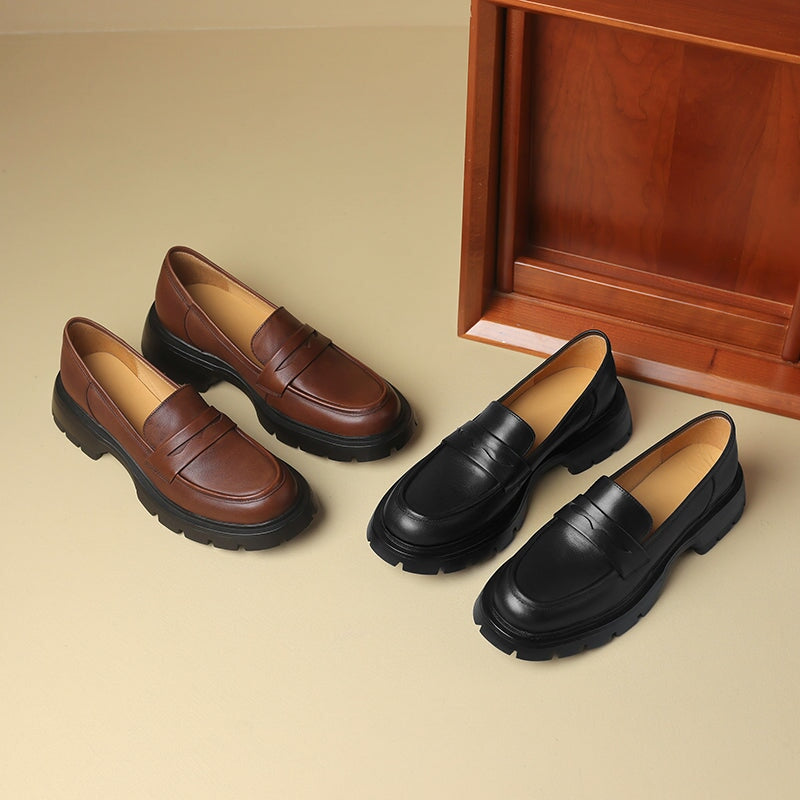 Crafted from premium full-grain water-dyed cow leather, these vintage-inspired penny loafers feature a classic round toe and a comfortable 40mm block heel. The TPR sole provides flexibility, durability, and excellent grip, while the slip-on design makes them perfect for effortless everyday wear with timeless charm. Each Shoes Fixed by Experienced Craftsman. It can be worn for years.