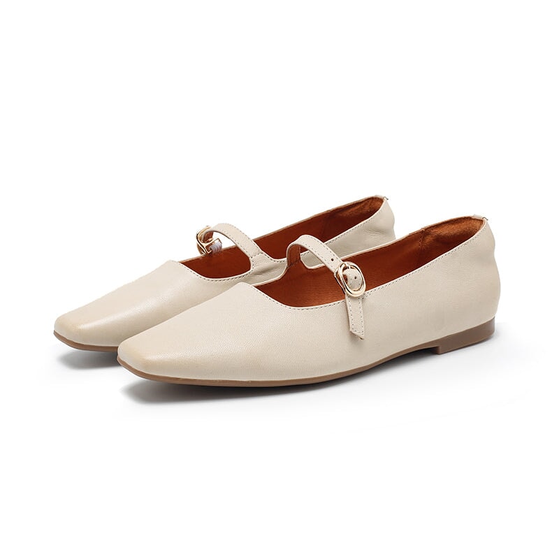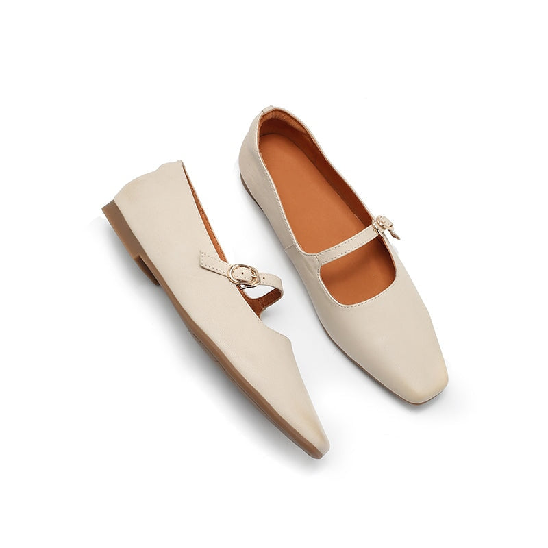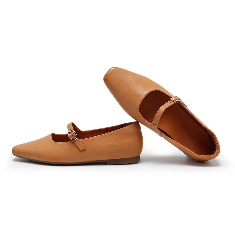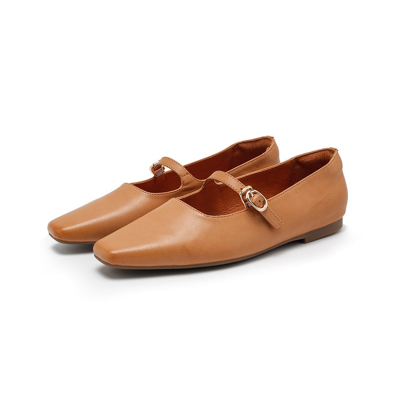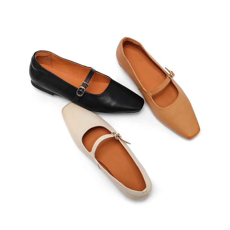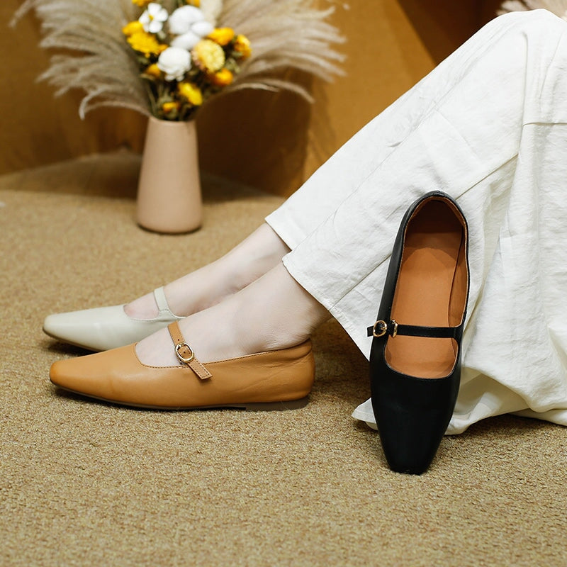 Dwarves Retro Mary Jane Flats Soft Waxed Sheepskin Casual Shoes in Black/Light Brown/Beige