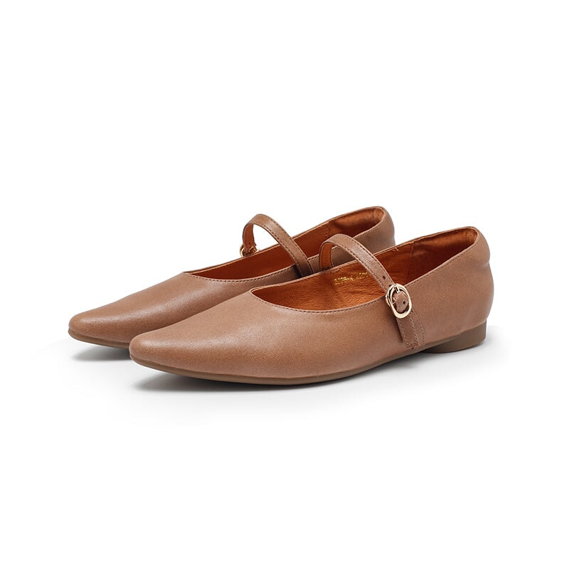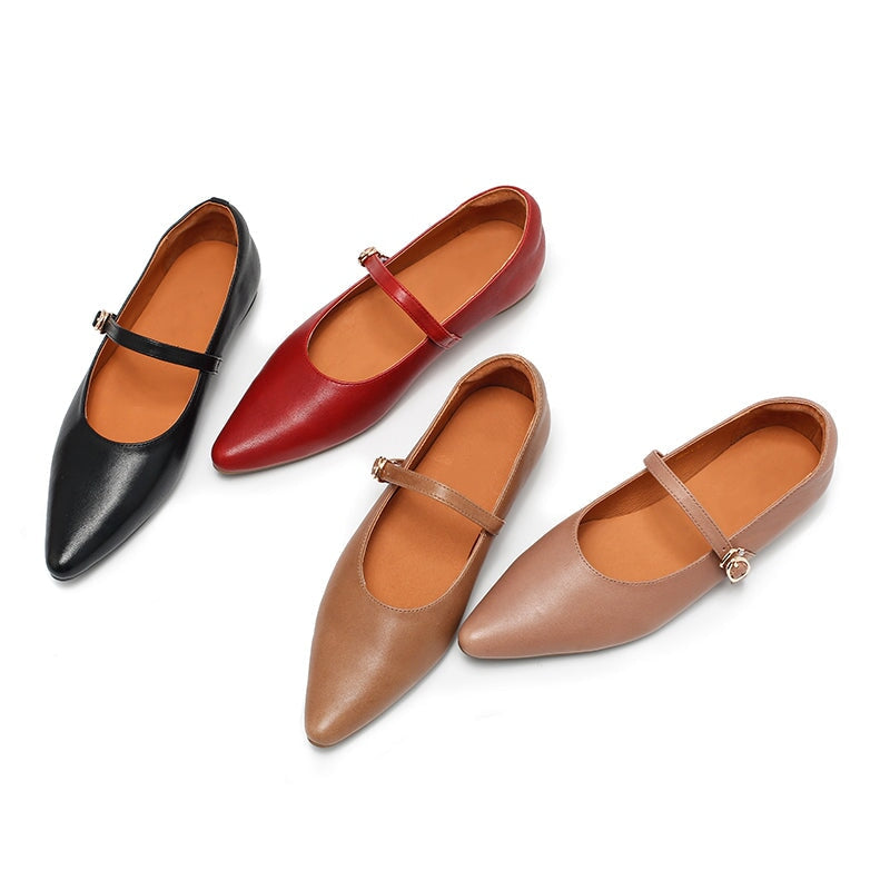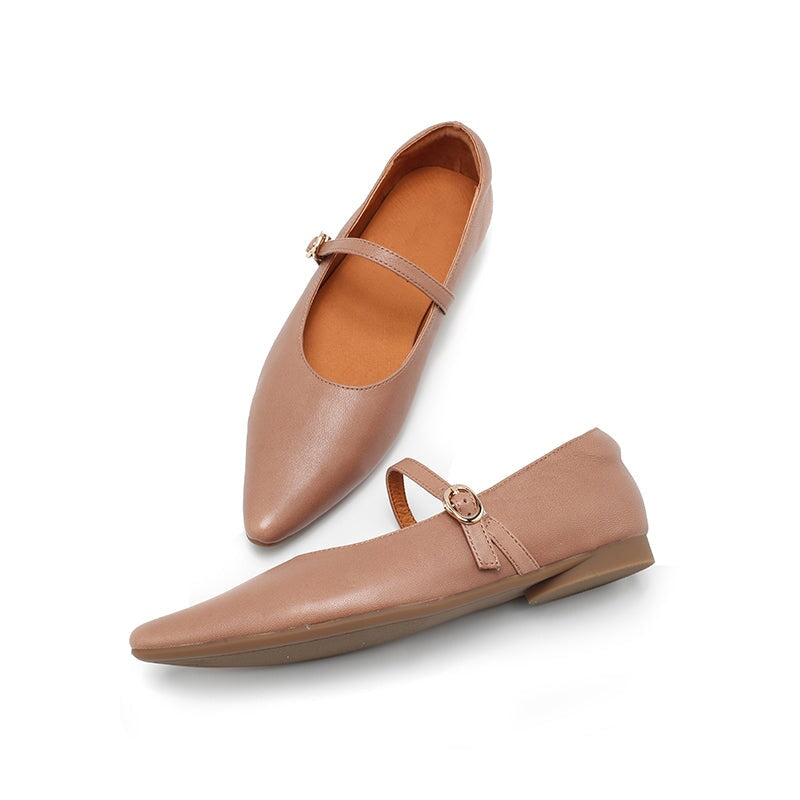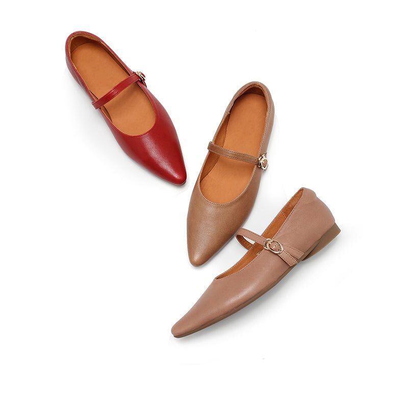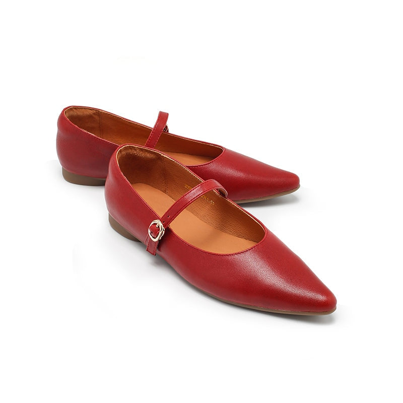 Dwarves Vegetable Tanned Sheepskin Leather Pointed Toe Mary Jane Flats in Khaki/Cameo Brown/Red/Black