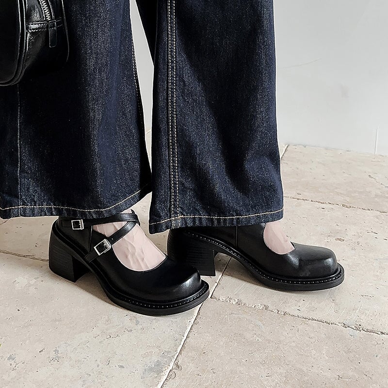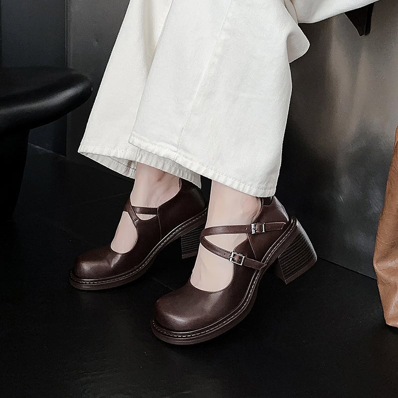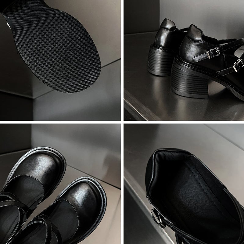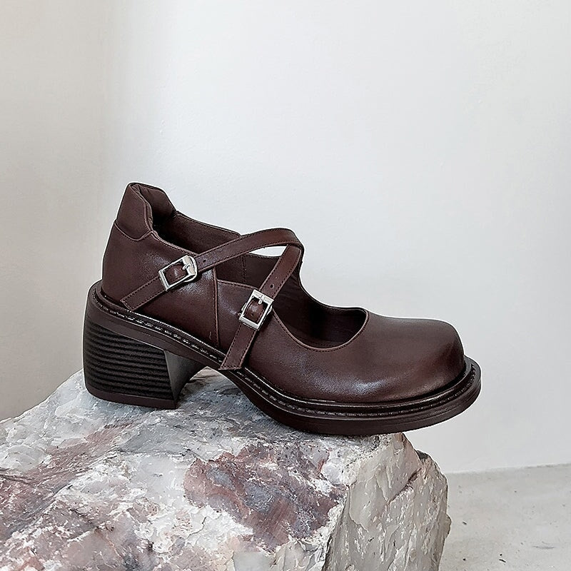 These handmade women’s Mary Jane pumps feature a classic round toe with a stylish cross-strap design and metal buckle for a secure, vintage-inspired look. Crafted from top layer cow leather, they offer durability with a smooth, premium finish. Inside, both the lining and insole are made from top layer sheepskin leather, delivering breathability and a soft, cushioned feel. Finished with a rubber outsole for reliable grip, these 65mm block-heel Mary Jane pumps are perfect for work, casual outings, or dressing up everyday outfits with timeless elegance.