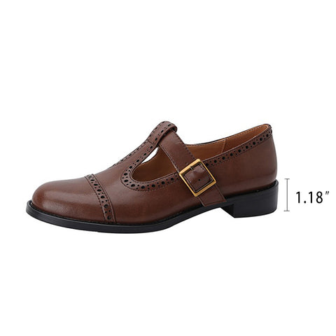 Handmade Leather Block T-strap Mary Jane Shoes For Womens Round Toe Retro Sandals