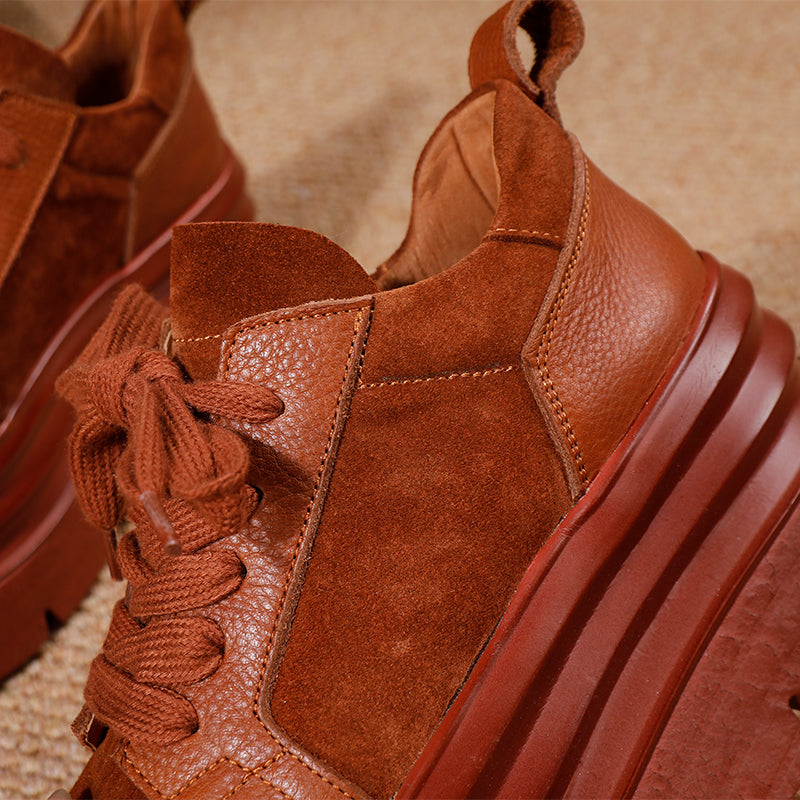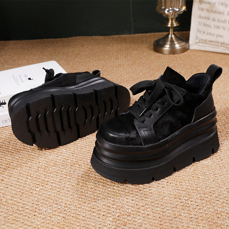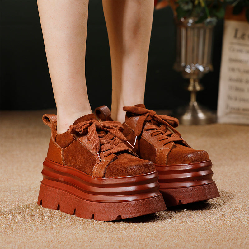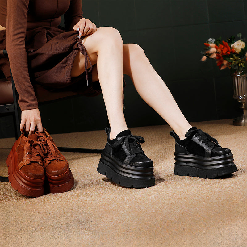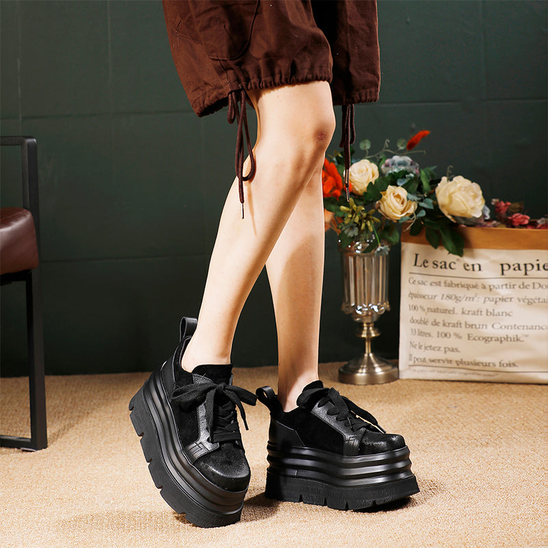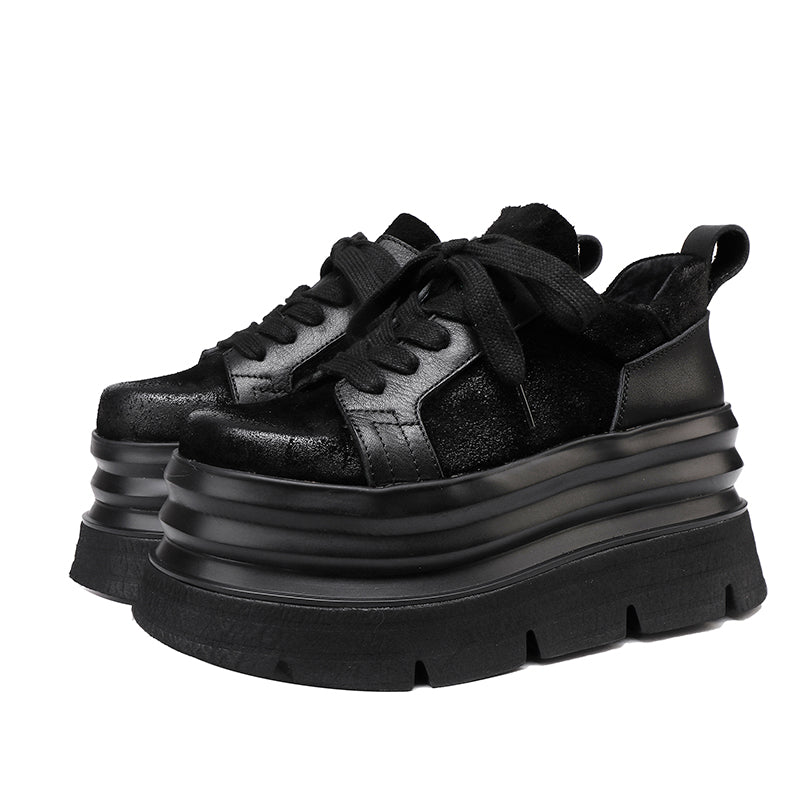 Step up your style with these Handmade Chunky Platform Oxford Shoes. Crafted from premium cow leather and cow suede, they feature a round toe, lace-up design, and an ultra-light EVA + rubber foam sole for comfort and durability. The high platform heel adds an edgy, designer-inspired look while keeping the shoes surprisingly lightweight. Perfect for women who love bold, fashion-forward style without compromising comfort.