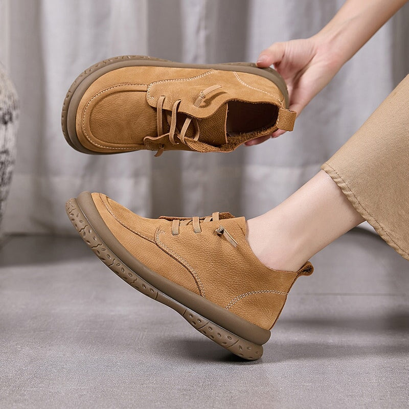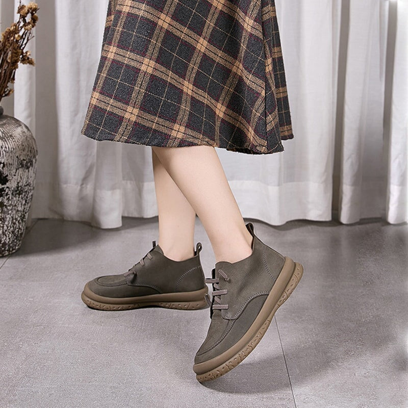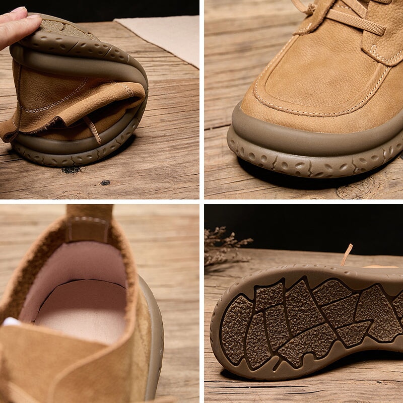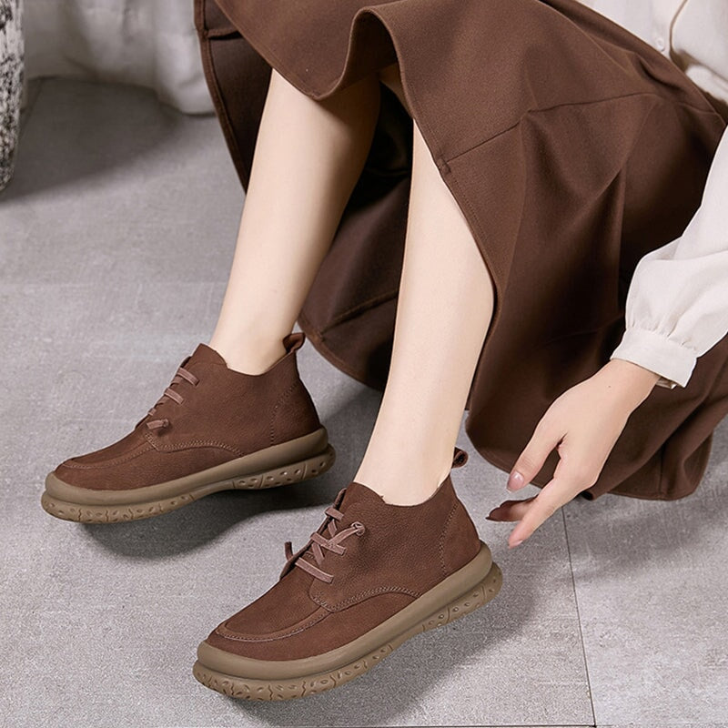 Step into everyday comfort with these vintage-inspired women's Oxford shoes. Made from premium nubuck cow leather, featuring a classic round toe, lace-up design, and a flexible rubber sole for all-day wear. These versatile barefoot flats combine retro charm with casual elegance perfect for commuting, walking, or weekend styling.