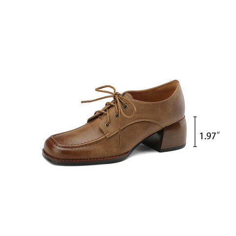High Heel Square Toe Lace up Design,Fit For Most Foot Shape,Picked Cow Leather Comfortable And Stand Wear And Tear.Waxed round personalized shoelaces.