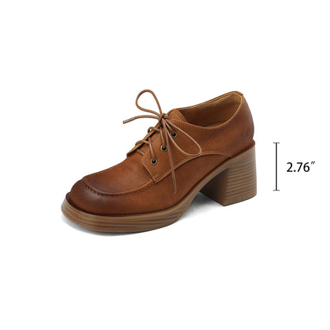 High Heel Square Toe Lace up Design,Fit For Most Foot Shape,Picked Cow Leather Comfortable And Stand Wear And Tear.Waxed round personalized shoelaces.