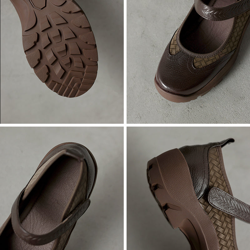 This platform Mary Jane crafted from premium sheepskin leather, they feature unique woven detailing, a secure Velcro strap, and a round toe design that ensures a relaxed, foot-friendly fit. The chunky rubber platform sole provides excellent cushioning, slip resistance, and durability—perfect for all-day wear. Lightweight, soft, and easy to slip on and off, these Mary Janes pair effortlessly with casual outfits, school-inspired looks, or everyday street style.