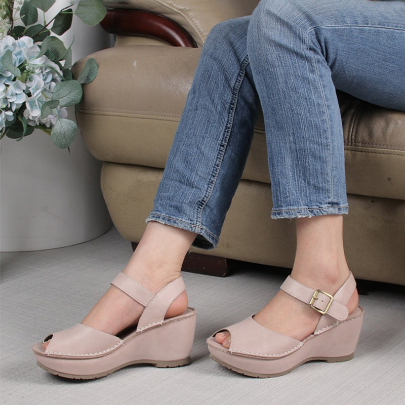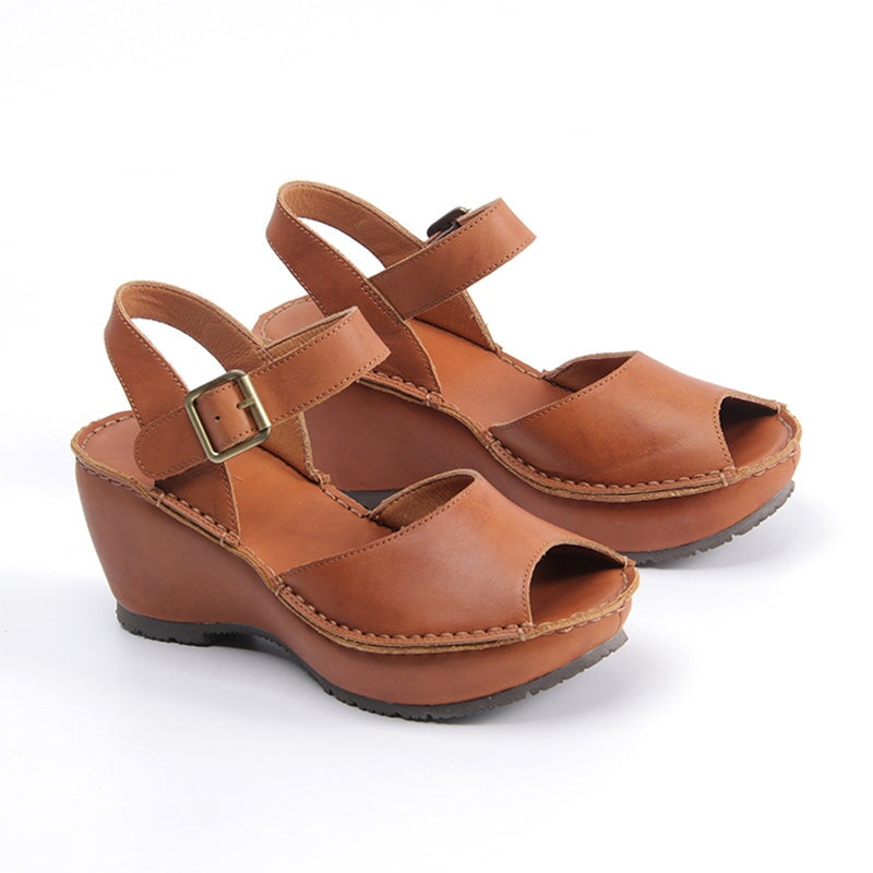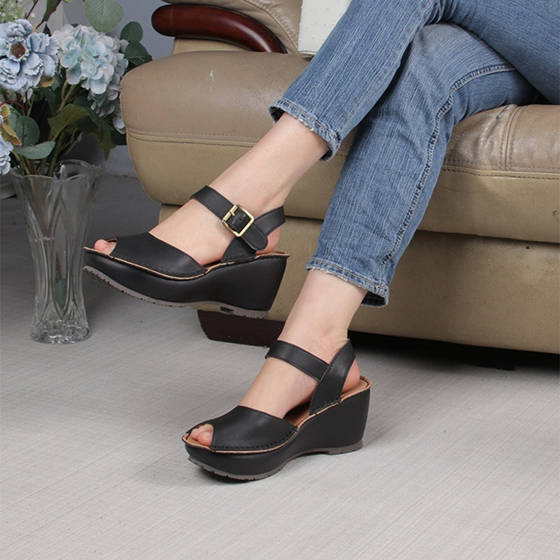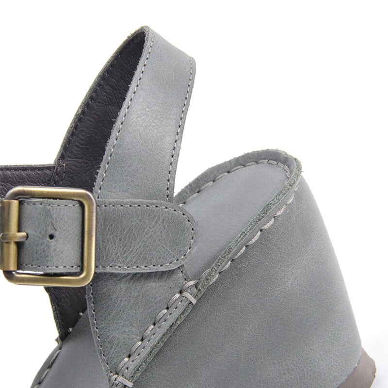 Step into timeless comfort and vintage charm with these handmade retro Mary Jane slingback sandals. Crafted from premium top-grain cow leather, they feature a chic peep toe, adjustable ankle strap with metal buckle, and a supportive wedge heel design that blends elegance with everyday wearability. The high-elastic rubber sole is soft, non-slip, and wear-resistant, offering excellent grip and durability. Perfect for casual outings or dressier occasions, these sandals combine classic style and lasting craftsmanship, making them a wardrobe essential that can be worn for years.