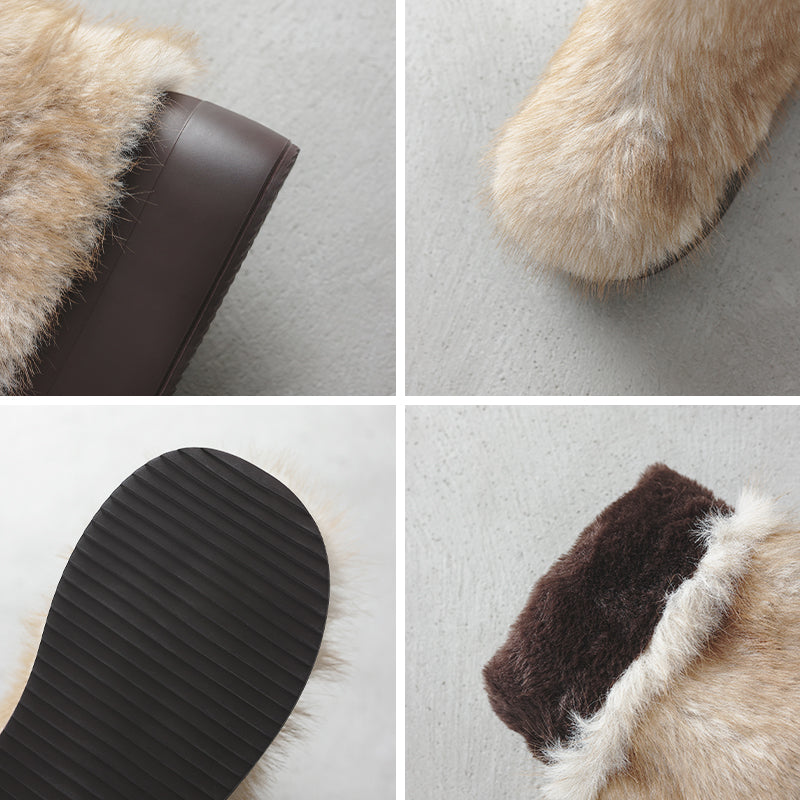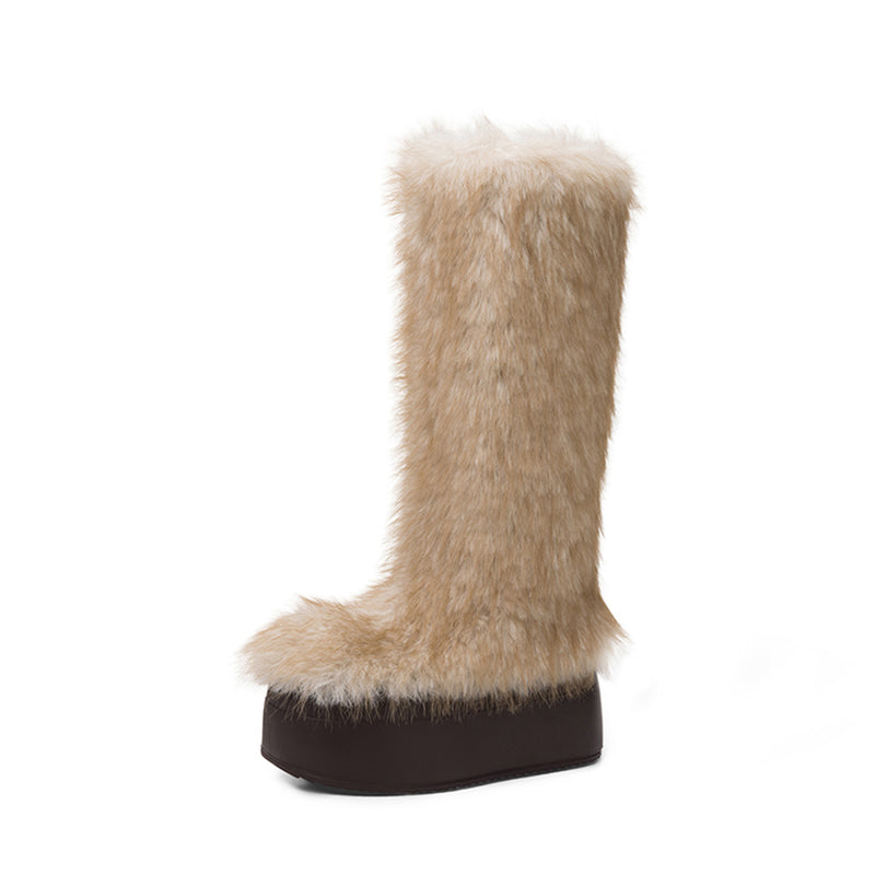 Step into bold winter style with these Women’s Shaggy Faux Fur Knee-High Platform Snow Boots. Designed with an edgy oversized look, these boots feature a plush Romon Fox-inspired faux fur upper and a cozy lining made from shearling and long faux fur for exceptional warmth in cold weather. The chunky 80mm rubber foam platform adds height without sacrificing comfort, while the classic round toe ensures easy, relaxed wear. Perfect for winter outfits, snow days, and statement street style, these knee-high shaggy boots deliver both fashion and function.