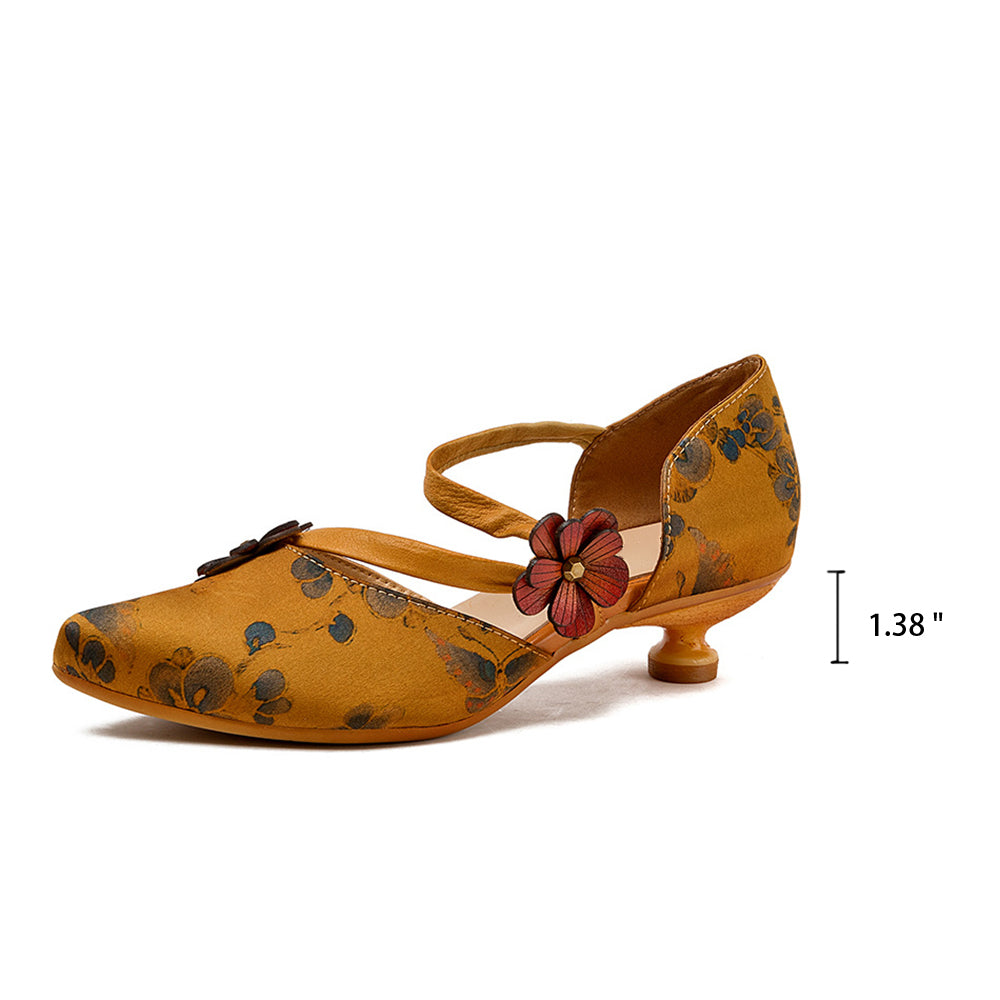 Genuine Leather Retro Pointed Toe Heels Pumps Women Shoes Kitty Heel Slip On Office Shoes
