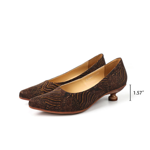Handmade Leather Pumps Kitten Heels Pointed Toe in Red/Coffee