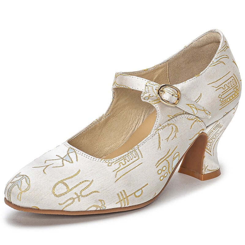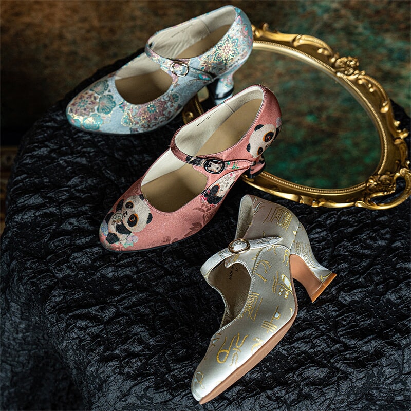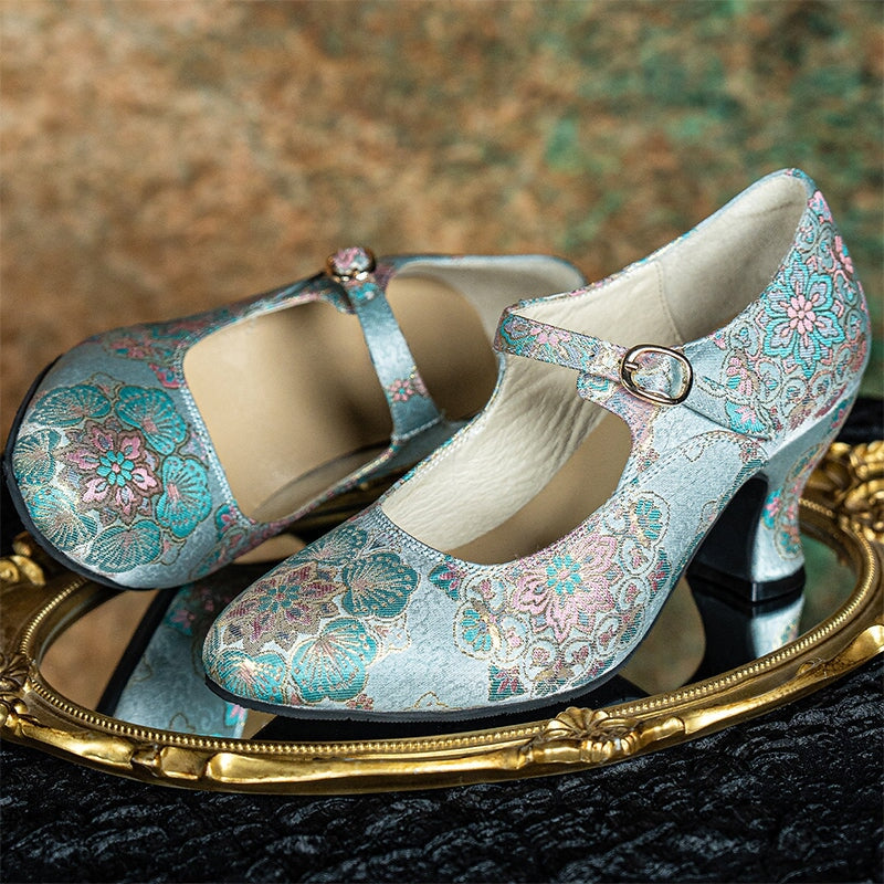 Step into timeless elegance with these Handmade Vintage Mary Jane Jacquard Fabric Pumps, inspired by traditional textiles and modern fashion design.