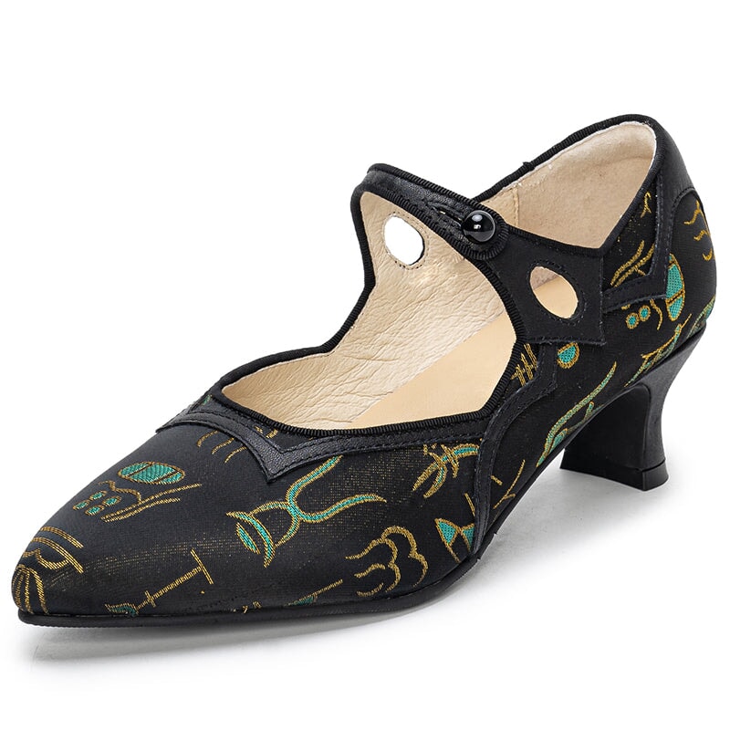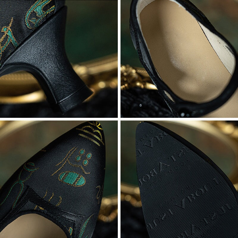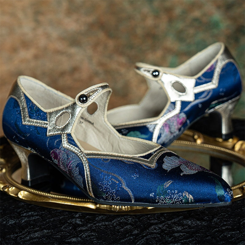 Step into refined elegance with these Handmade Vintage Mary Jane Pumps, blending soft cow leather with premium jacquard fabric inspired by Chinese traditional aesthetics.