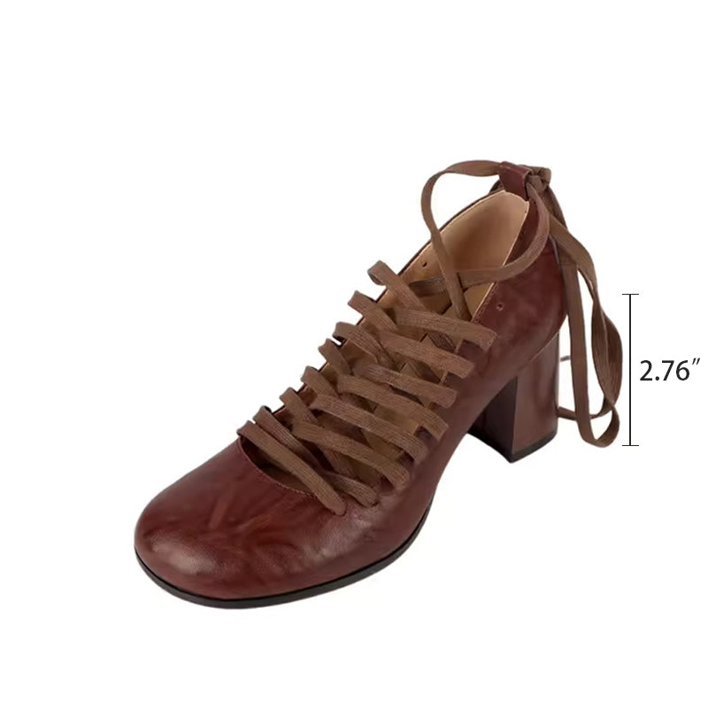 Mori Girl Shoes Leather Handmade 70mm Block Heel Mary Jane Strappy Sandals in Coffee/Black
