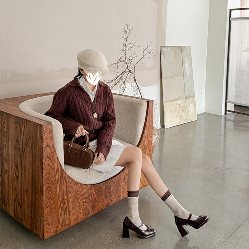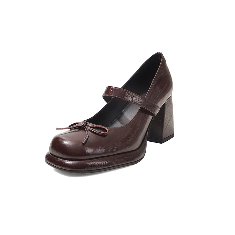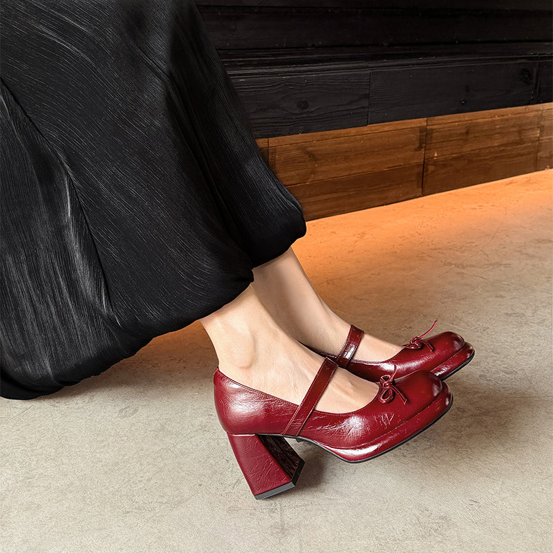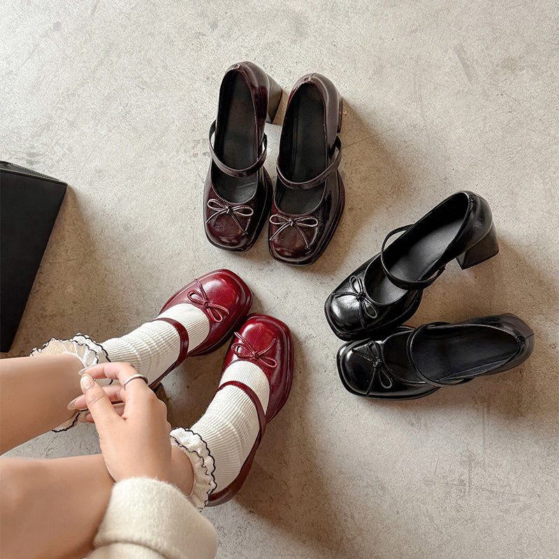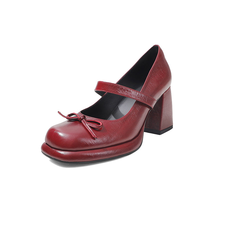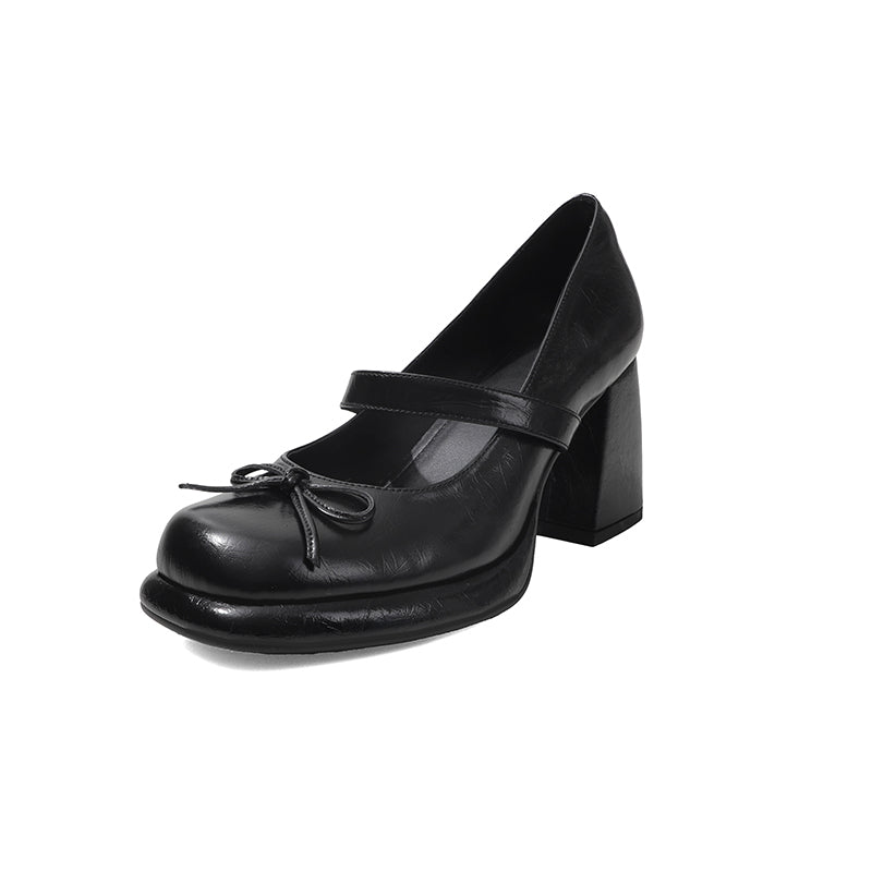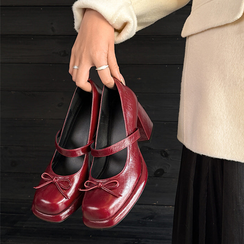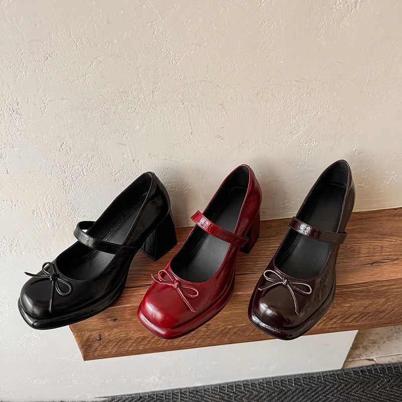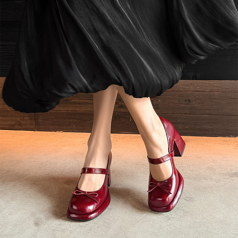 These retro-inspired square-toe Mary Jane pumps feature a chunky 75mm block heel and a charming bow detail for an elegant yet playful look. Handmade from premium full-grain cow leather, they blend Y2K, preppy, and vintage schoolgirl style with everyday comfort. A timeless platform design perfect for dressing up casual outfits or completing a refined retro ensemble.