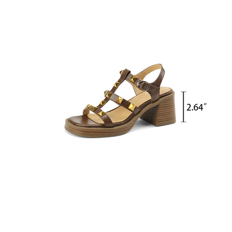 Sheepskin Rivet 67mm Block Heel Gladiator Sandals in White/Brown