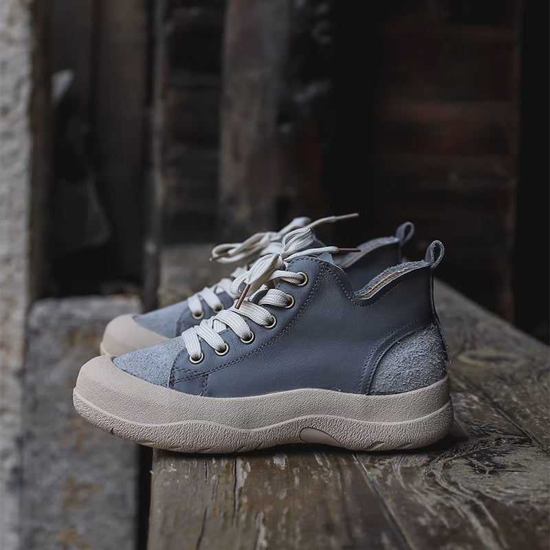 Women’s Casual Lace Up Handmade Cow Leather Platform Sneakers in 5 Colors