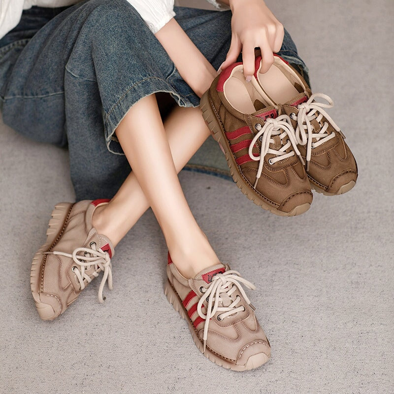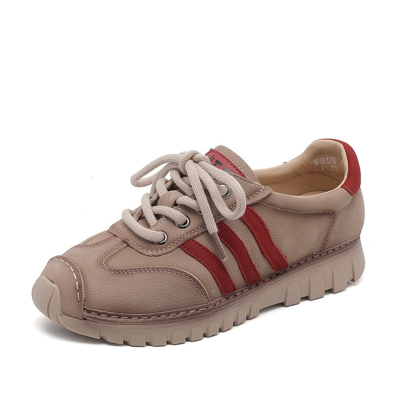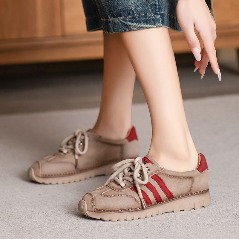 Women’s German Training Sneakers Leather Casual Sport Shoes in Beige Grey/Khaki