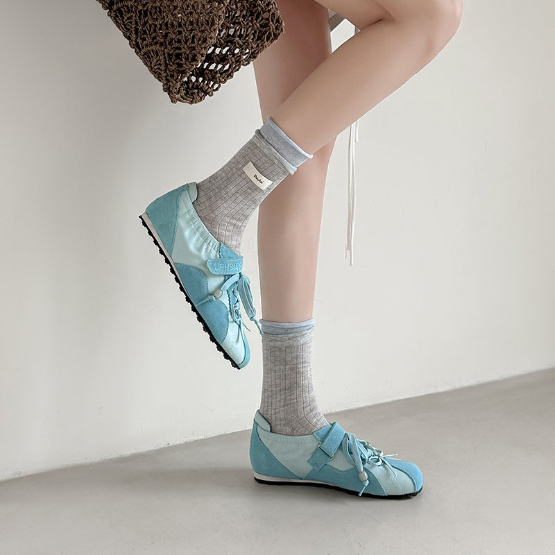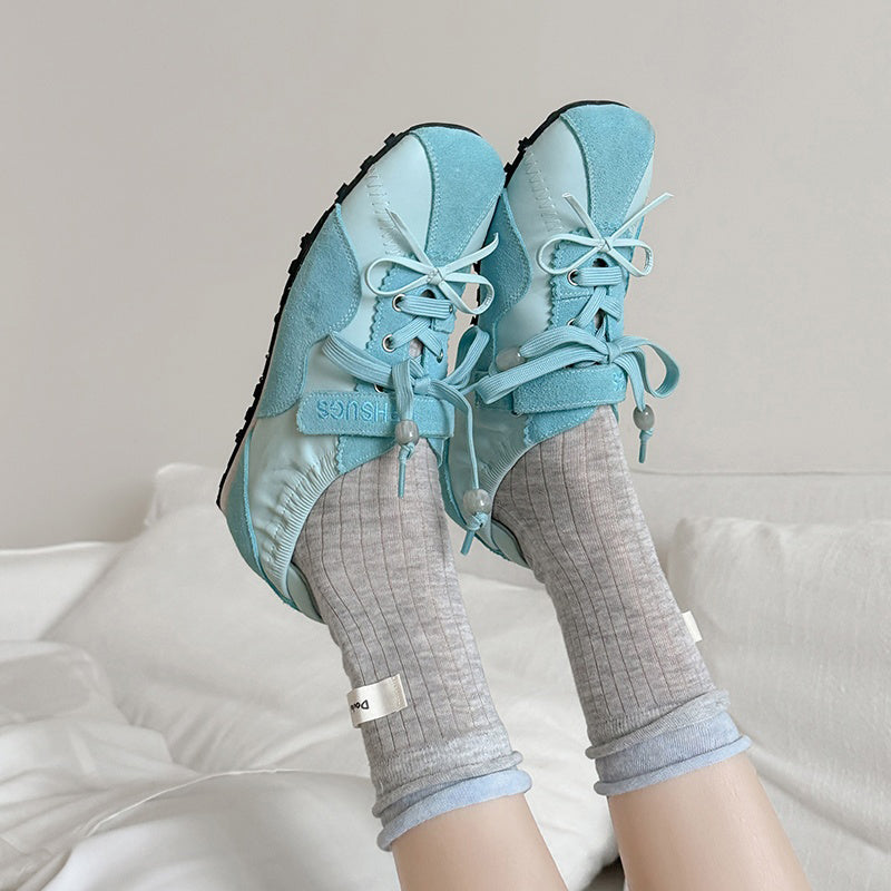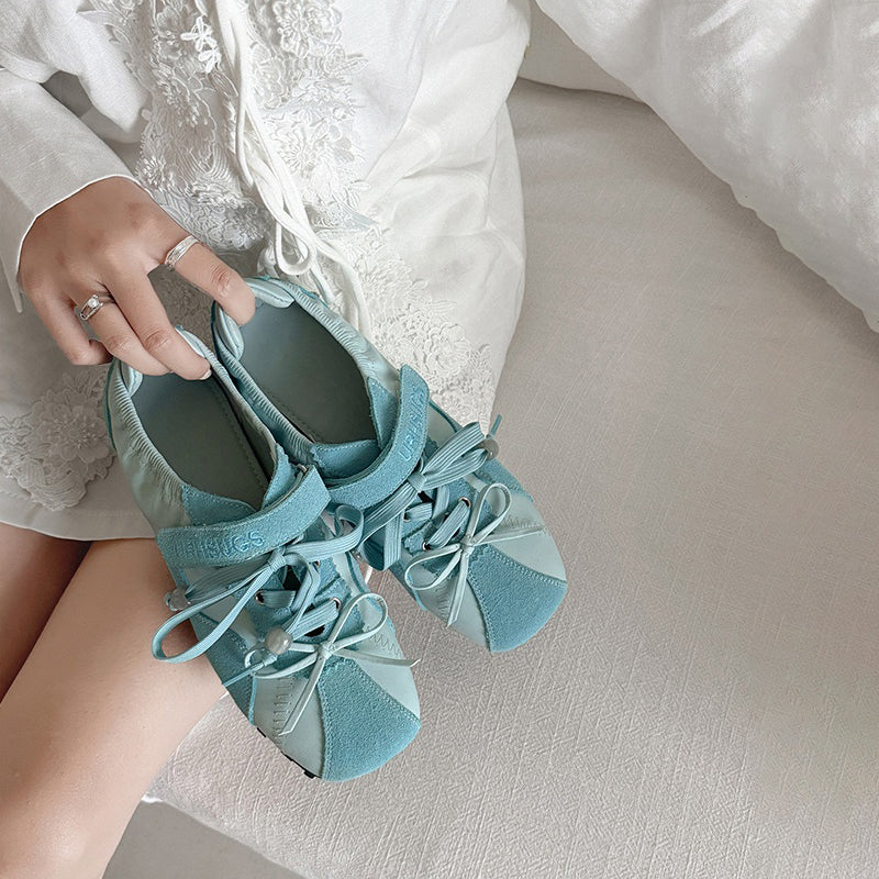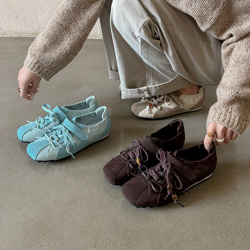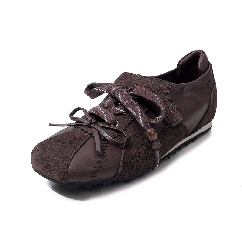 Women’s Mary Jane Ballet Flats Designer Leather Casual Hidden Lift Sneakers in Brown/Beige/Blue