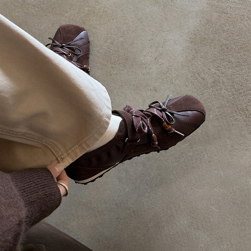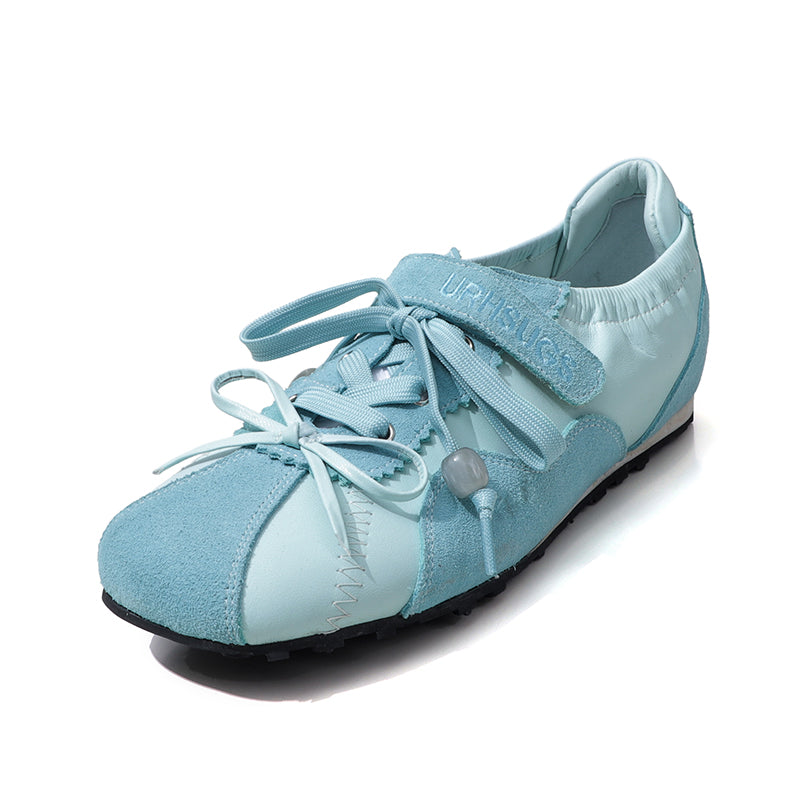 These women’s square toe Mary Jane ballet flats combine casual comfort with designer-inspired style. Crafted from premium cow leather, they feature a unique lace-up front paired with an adjustable hook-and-loop Velcro strap for a secure, customizable fit. Inspired by classic ballet shoes and modern Mary Jane trainers, the flat silhouette is enhanced with a hidden inner lift that subtly adds height without sacrificing comfort. Perfect for relaxed daily looks, these flats balance elegance and ease—ideal for walking, commuting, or styling with casual and artistic outfits.
