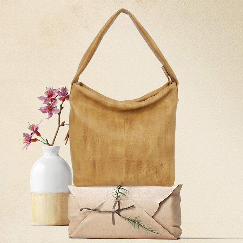 シンプルなデザインのベジタブルタンニンレザーレディースクロスボディバッグ