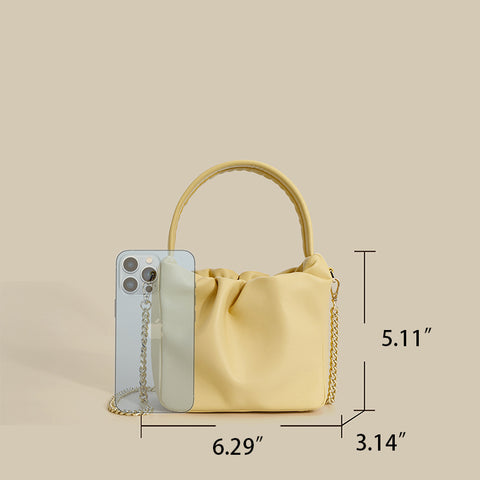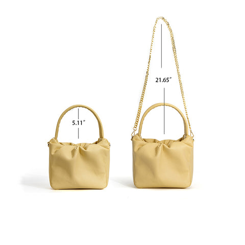 柔らかい牛革プリーツスモールスクエアバッグハンドヘルドトートバッグ