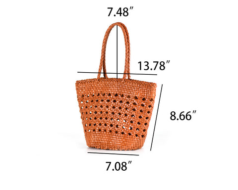 編み野菜かごバッグ 牛革中空ハンドバッグ