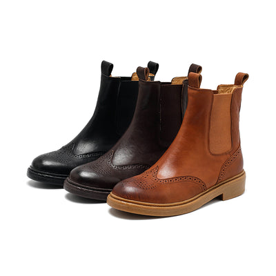ハンドメイドレザーレトロチェルシーブーツ レディース ブラッシュオフ ...