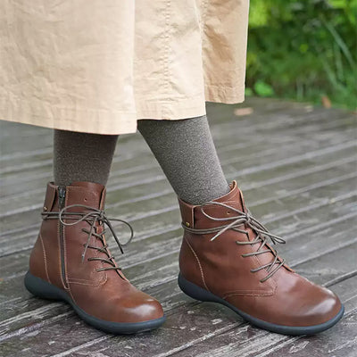 ハンドメイド レディース レザー ブーティ ラウンドトゥ レースアップ...
