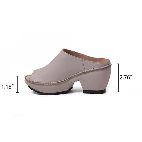 本革ブロックヒールスリッパ、レディースピープトゥスリングバックサンダル、ベージュ/ブラウン