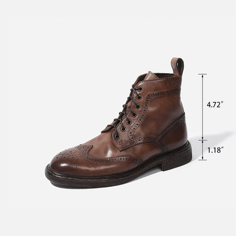 グッドイヤーウェルト ウィングチップ アンクルブーツ ハンドメイド ブローグブーツ レディース 本革ソール ブラウン/ブラック