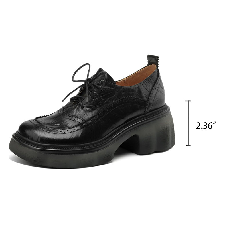 ハンドメイド本革 60mm プラットフォーム ブローグ オックスフォード シューズ ラウンドトゥ ブラウン/ブラック