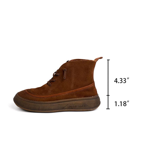ハンドメイド本革マーティンブーツ レースアップ コンバットブーツ レトロ チャンキー アンクルブーツ グレー/コーヒー