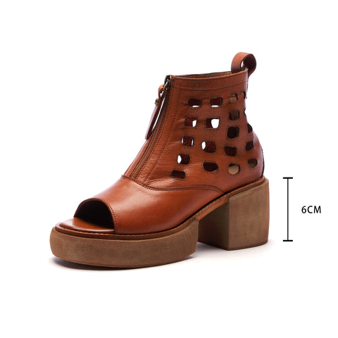 つま先が見えるサマーブーツ、滑らかな質感の上質なレザーアッパー、快適な EVA ソール、アッパージッパー、ハンドカット。