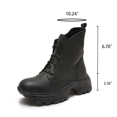レースアップ コンバットブーツ レトロ チャンキー アンクルブーツ ハンドメイド 本革 バイカーブーツ ブラック/コーヒー