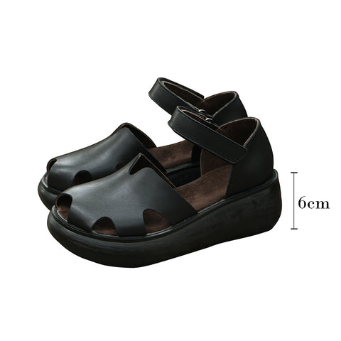 夏用ウェッジサンダル プラットフォーム カットアウト オープン ピープトゥ サンダル ブラック/ホワイト