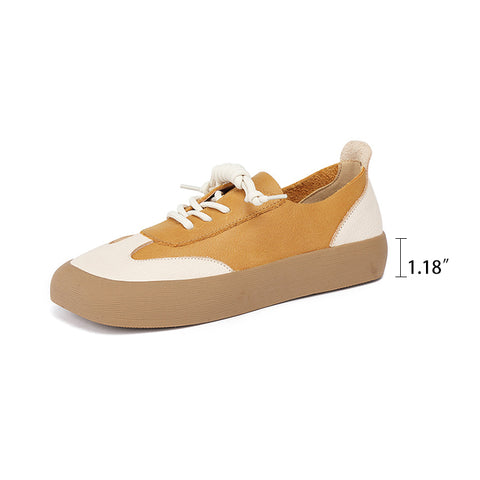 デザイナーシューズ カラーブロック 本革 フラットシューズ レディース ハンドメイド イエロー/コーヒー