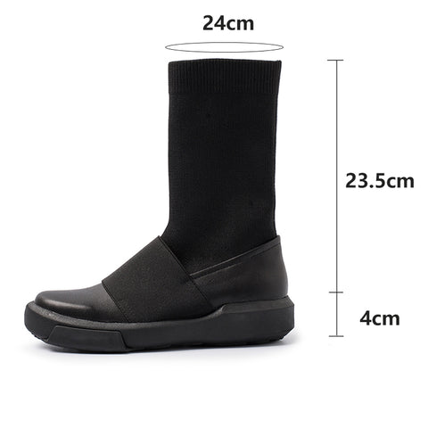 レザーチェルシーブーツ ハンドメイドソックスブーツ デザイナーソフトブーツ ブラック