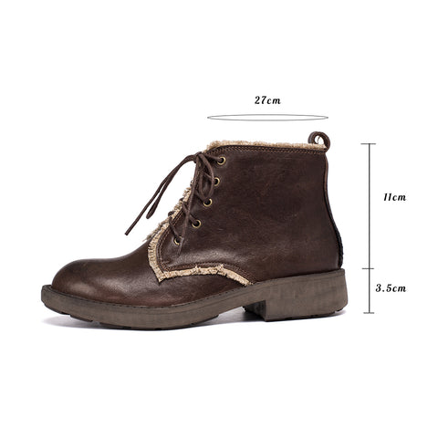 ハンドメイドシープスキンコンバットブーツデザイナーレトロチャンキーアンクルブーツコーヒー/ダークコーヒー/ブラック