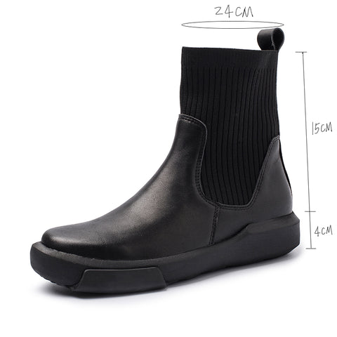 ワックスレザーチェルシーブーツ ハンドメイド ブリティッシュ ソックスブーツ ブラック/ブラック ショート プラッシュ
