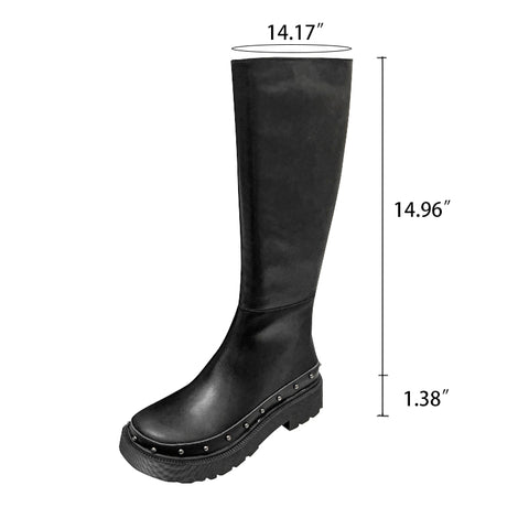 ホワイト/ブラックレザーのレディース乗馬ブーツ - チャンキーソールのロングブーツ