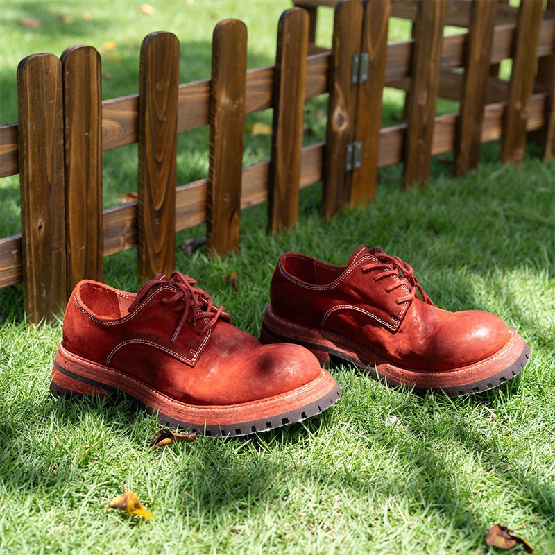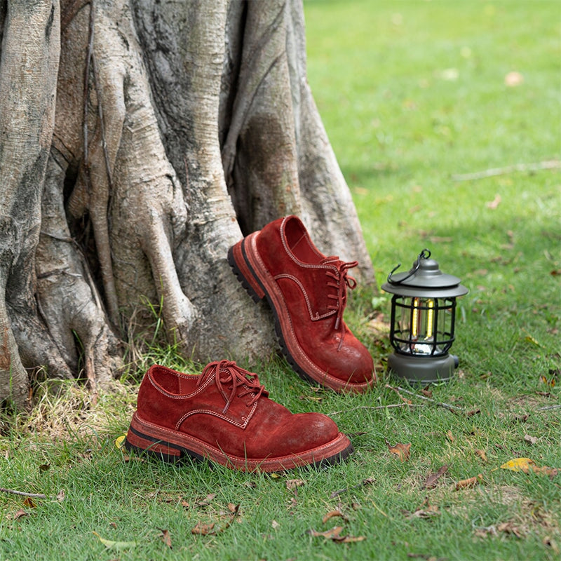 柔軟性を高めるため、天然馬革と植物タンニンなめしの収縮技術を使用しています。革の自然な特性を保っているため、靴はそれぞれがユニークです。自然に残る模様は気にしないでください。靴には水洗いプロセスを使用しており、自然乾燥後、シワが残ります。このスタイルにはグッドイヤーウェルトプロセスを使用しています。