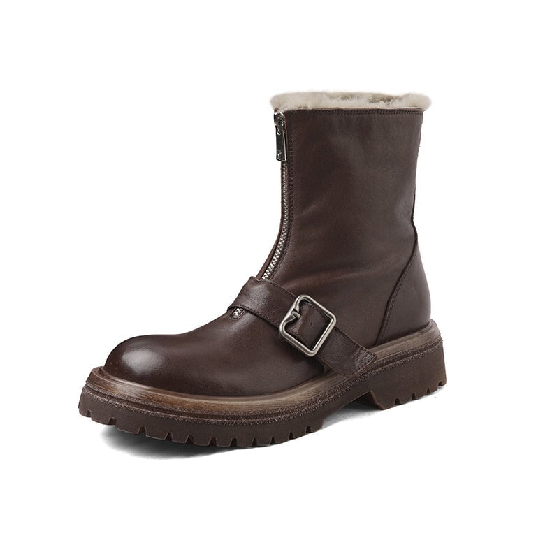 ファッションスタイルのスクエアトゥサイドジップデザイン、厳選された牛革は柔らかく、快適で、摩耗や損傷に耐えます。100%シープスキンの裏地とインソールで、柔らかく、通気性と吸湿性に優れています。