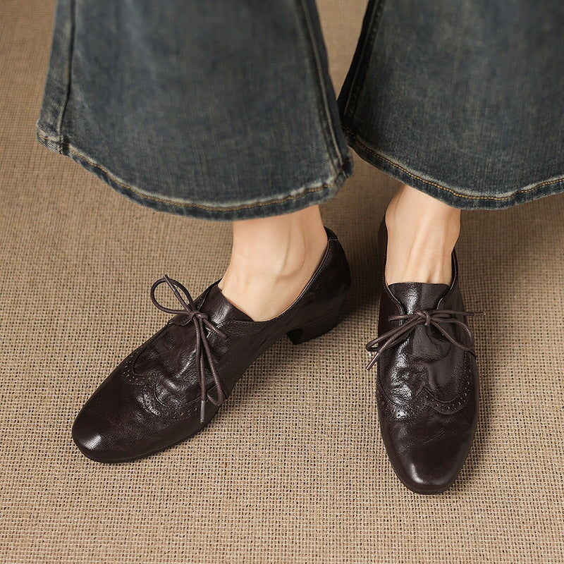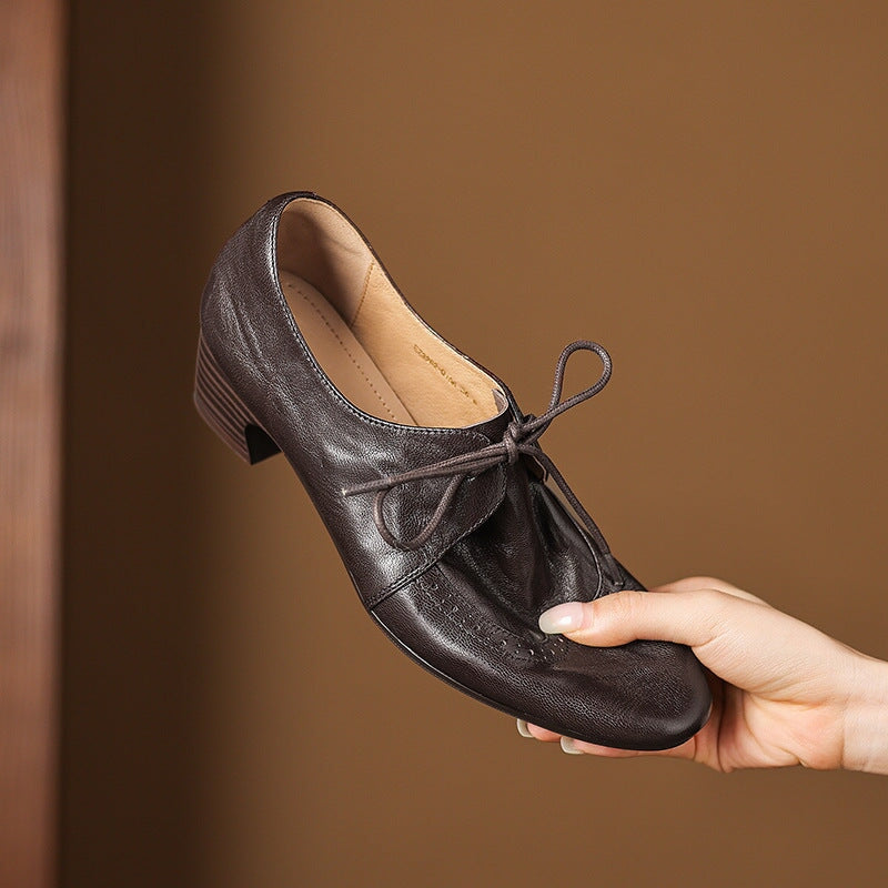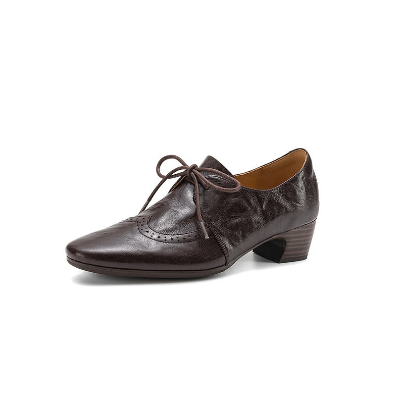 ラウンドトゥ 50mm ブロックヒール レザー ペニーローファー レディース ブラウン/ブラック