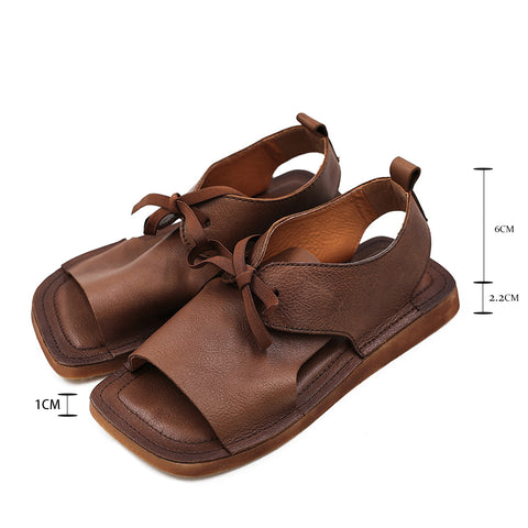 2021 デザイナー サマーシューズ 本革サンダル スクエアトゥ レトロ フラット コーヒー/ブラウン