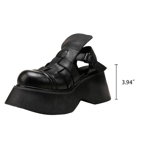 10mm プラットフォーム 本革 グラディエーター サンダル レディース ブラック/ブラウン