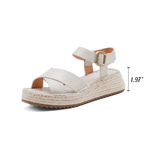 ベージュ/ブラウン/ピンクのスリングバック エスパドリーユ ウェッジ レザー サンダル